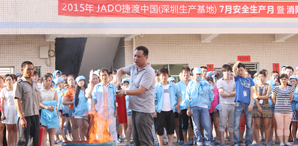 According to the plan of 2015 safety management objectives, on August 7th, we held the first fire drill , and invited professional fire instructor to explain and drill for all the JADO member,