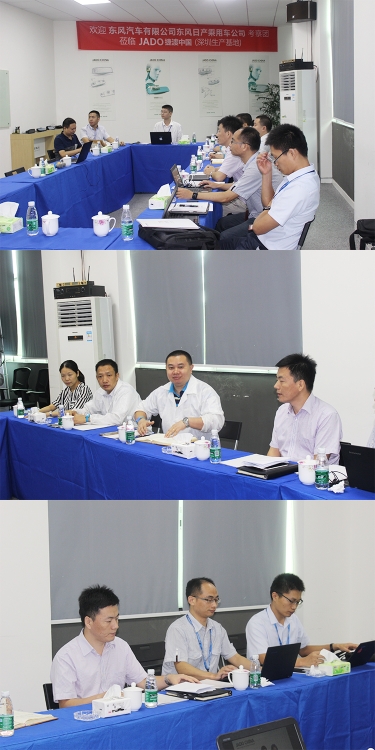 初步審核后,9月8日,東風汽車有限公司、東風日產乘用車公司研發部門、采購部門、發貨部門和品質部門組成的考察團一行蒞臨JADO捷渡中國深圳生產基地進行全面實地考察。