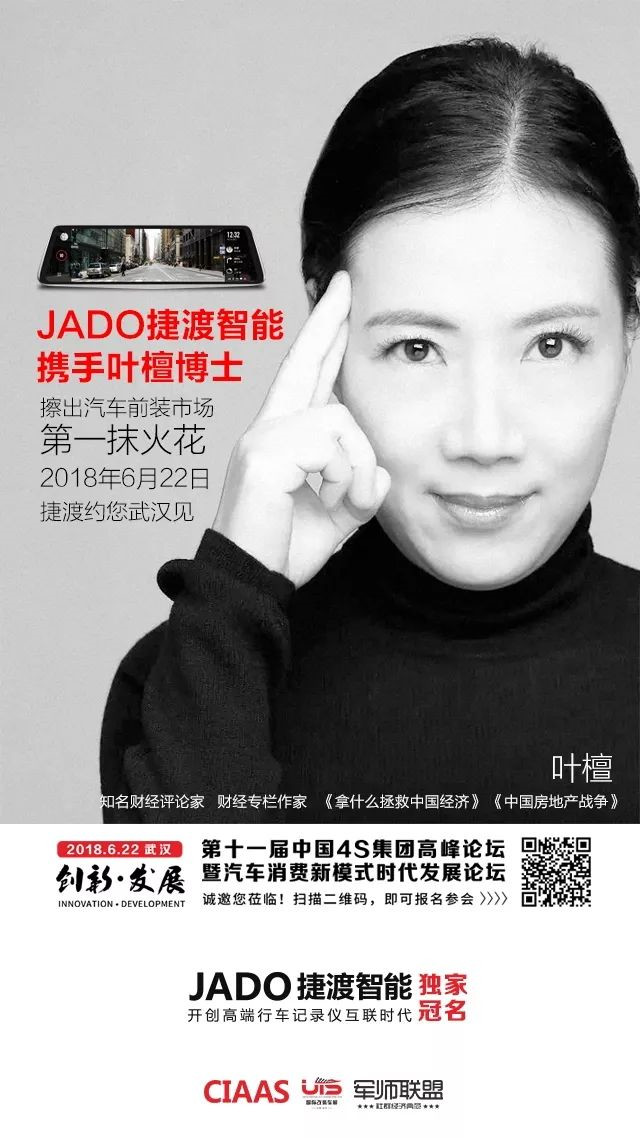 日前,第16屆中國(武漢)國際汽車后市場博覽會暨第5屆中國國際汽車升級及改裝展覽會(以下簡稱武漢展)新聞發(fā)布會在武漢舉行。作為武漢乃至中部地區(qū)有史以來最大的汽車后市場展覽會,這次展會將于6月23-25日在武漢國際博覽中心舉行。此次武漢展將會有哪些看點?又會有哪些突破和創(chuàng)新?相信行業(yè)內(nèi)很多專業(yè)人士對此十分關(guān)心。作為該盛會最重磅的同期活動之一 ——“創(chuàng)新·發(fā)展·第十一屆中國4S集團高峰論壇暨汽車消費新模式時代發(fā)展論壇”(以下簡稱:4S集團千人高峰論壇)的獨家冠名商,JADO捷渡智能(中國)攜手點金國際傳媒會給大家?guī)碓鯓拥捏@喜呢?