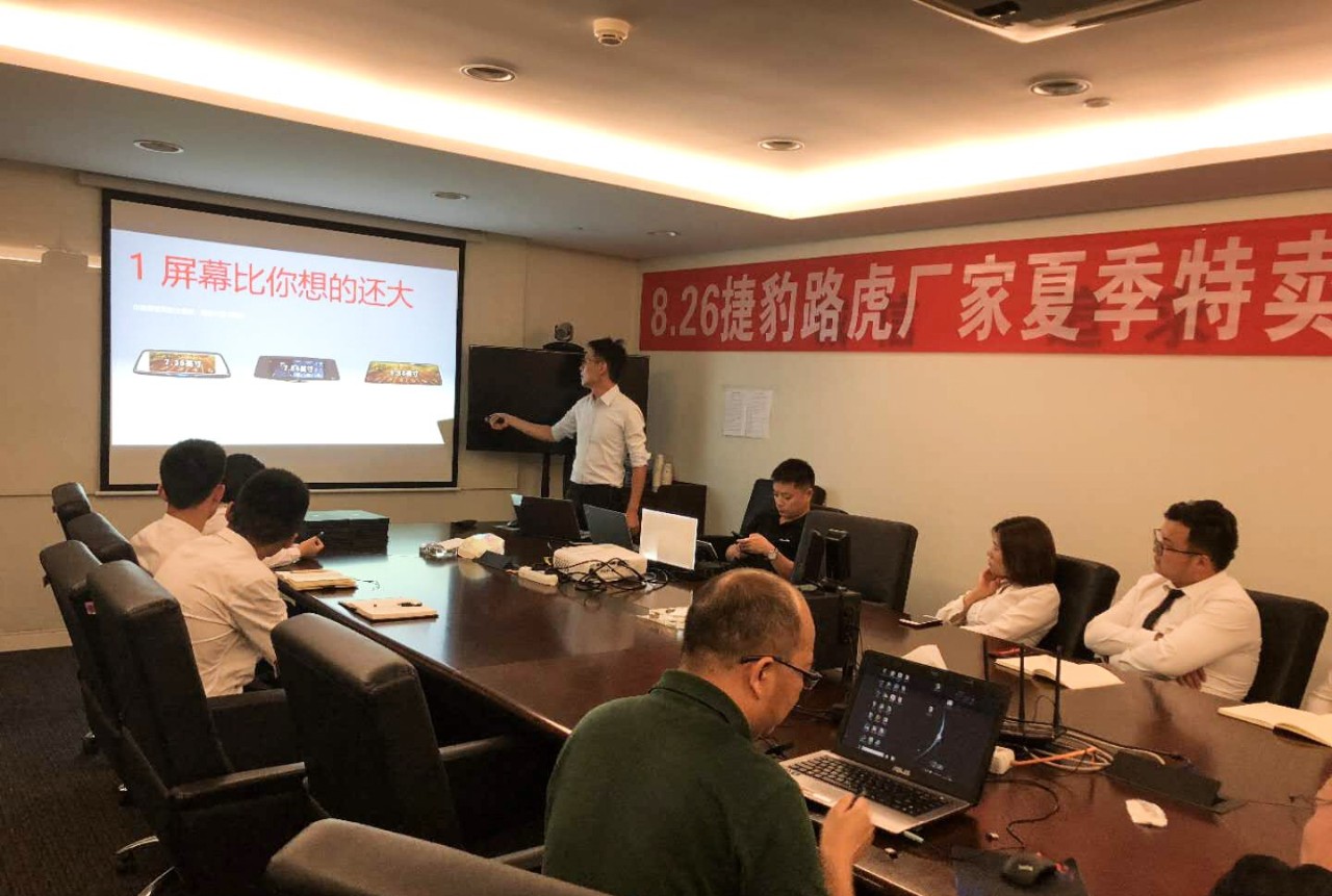 來自華東某捷豹路虎品牌4S店的近20名銷售精英參與了此次交流培訓會。通過學習和實踐,就車主的需求以及針對需求找到解決方案,進行了3個小時的溝通和學習,同時針對JADO捷渡智能(中國)和超高清智能流媒體后視鏡也進行了深入的培訓。