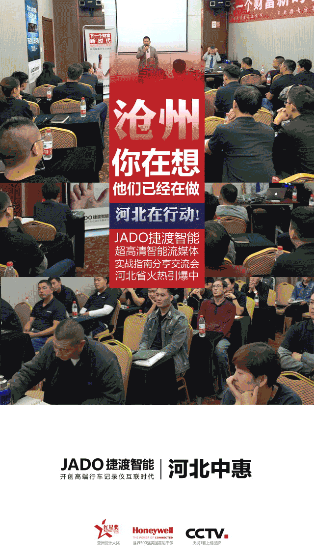 JADO捷渡智能(中國)將河北作為重點戰略布局區域,攜手河北省戰略合作伙伴石家莊中惠汽車電子有限公司,目前分別在河北滄州、邢臺 、廊坊 、石家莊舉行了 “下一個財富新時代”交流分享會!超高清智能流媒體后視鏡在河北市場已成星火燎原之勢,必將火遍大江南北。